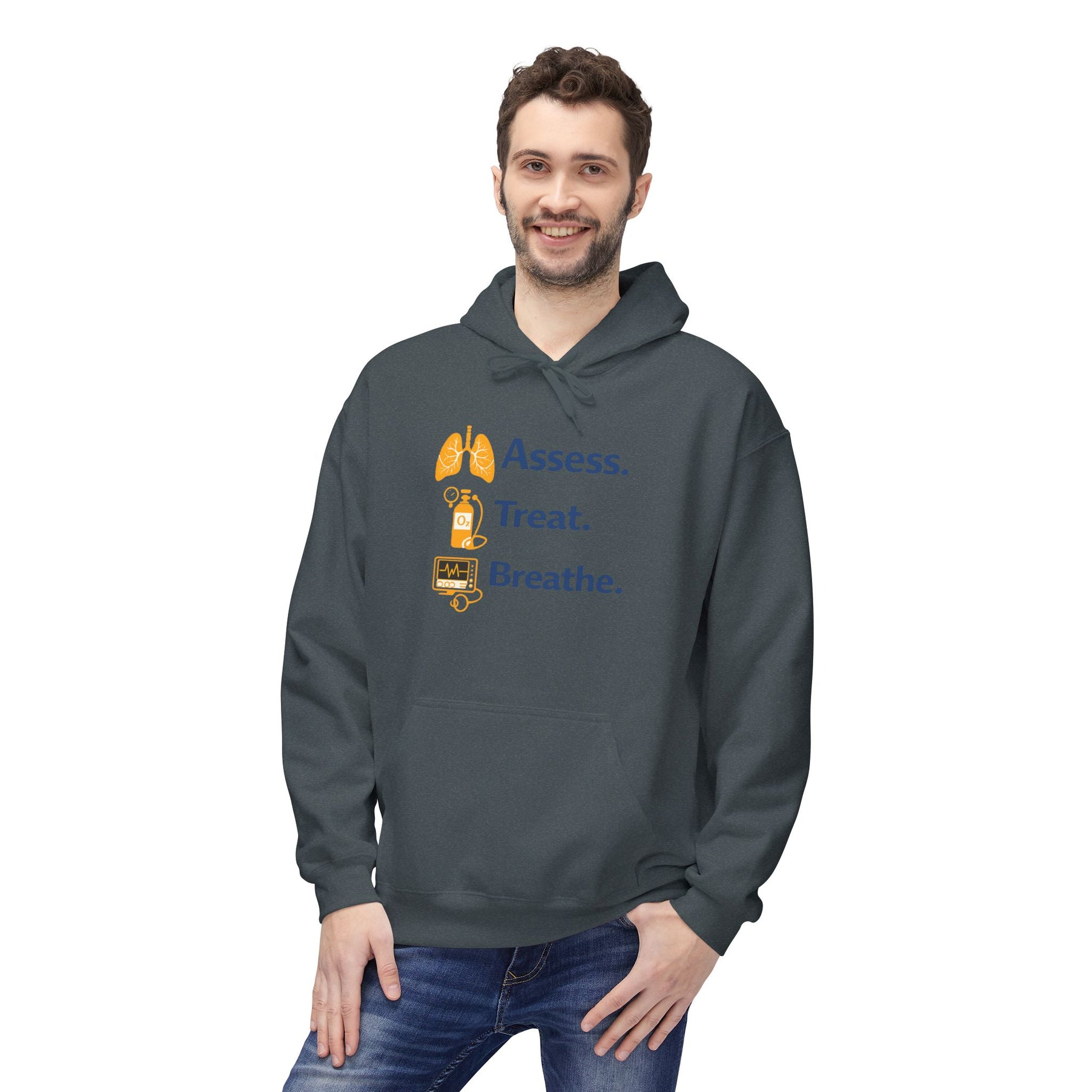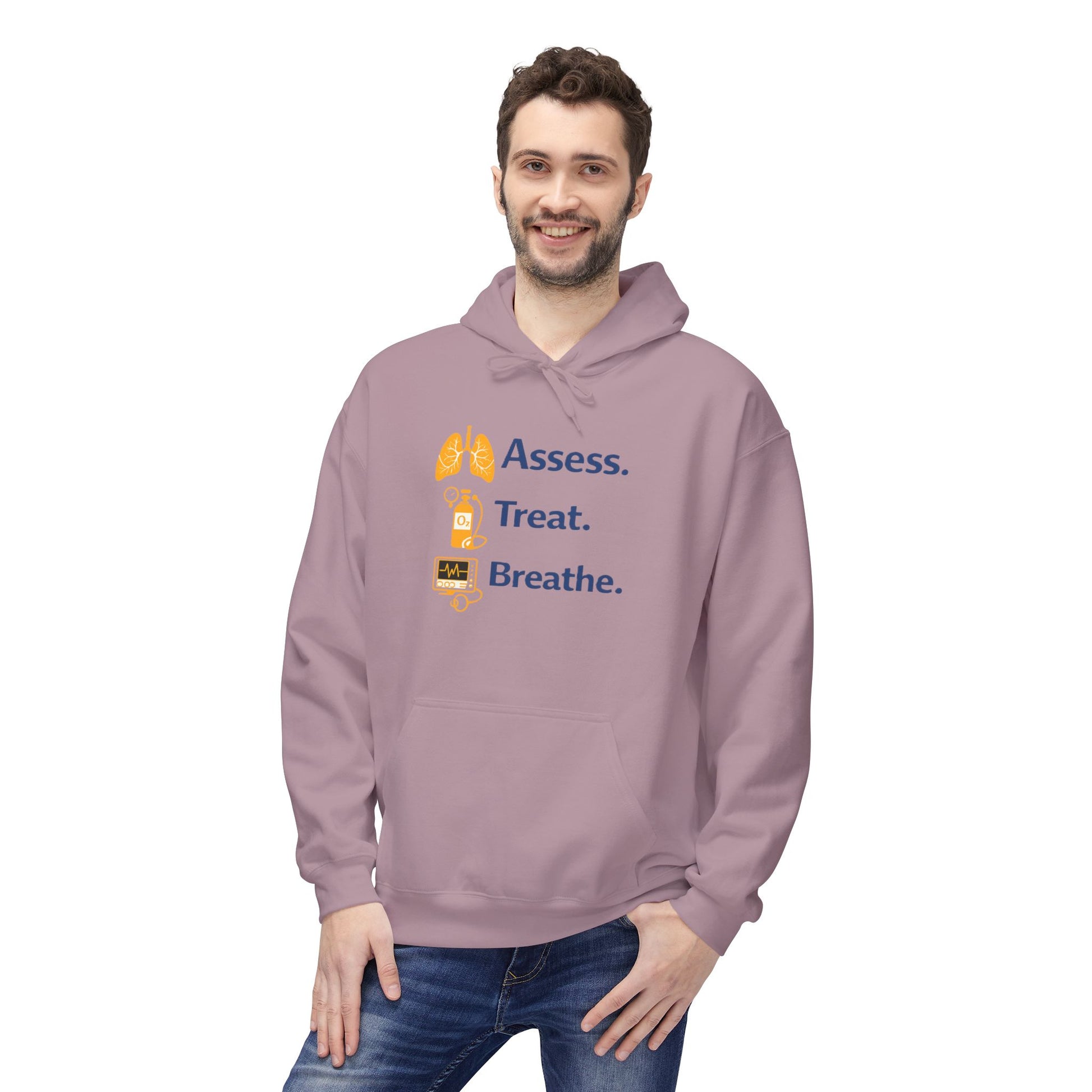 This Assess. Treat. Breathe. design captures the core of respiratory therapy in a bold, modern layout paired with clean medical icons. It’s a simple, powerful statement that reflects the critical thinking, skill, and responsibility respiratory professionals bring to every shift.