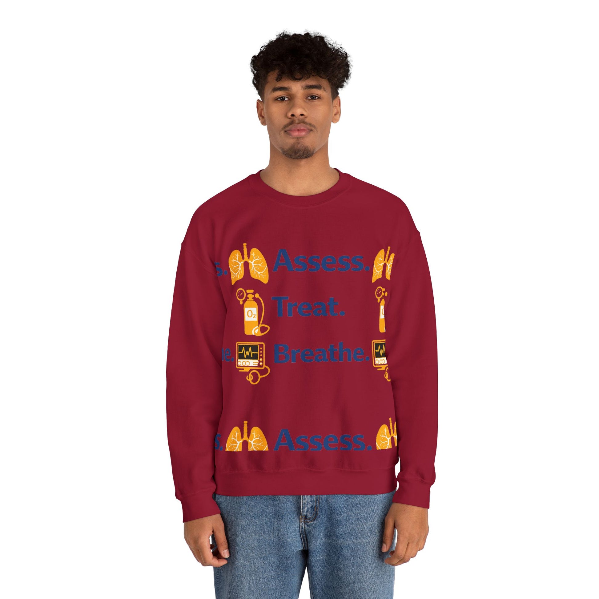 This Assess. Treat. Breathe. design captures the core of respiratory therapy in a bold, modern layout paired with clean medical icons. It’s a simple, powerful statement that reflects the critical thinking, skill, and responsibility respiratory professionals bring to every shift.
