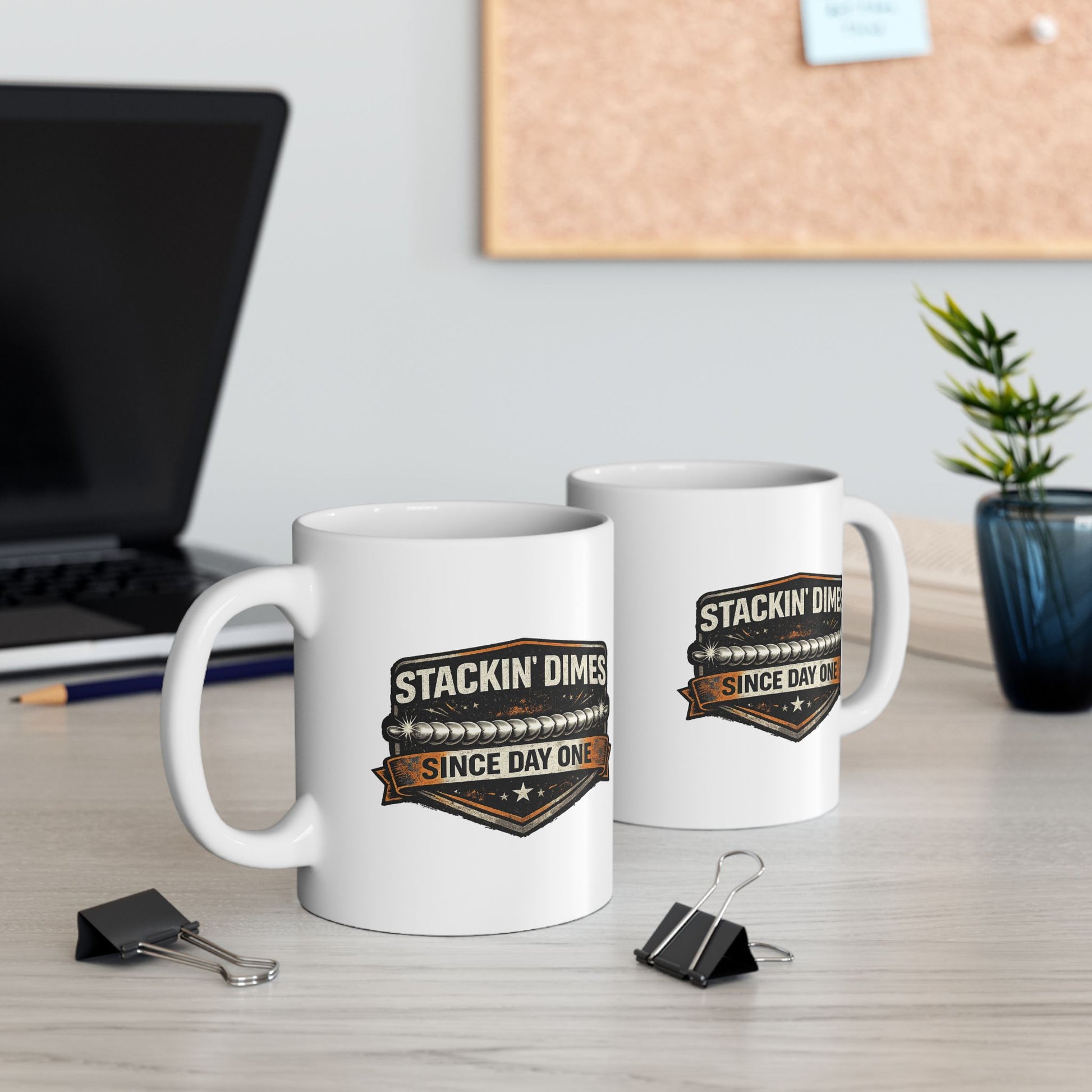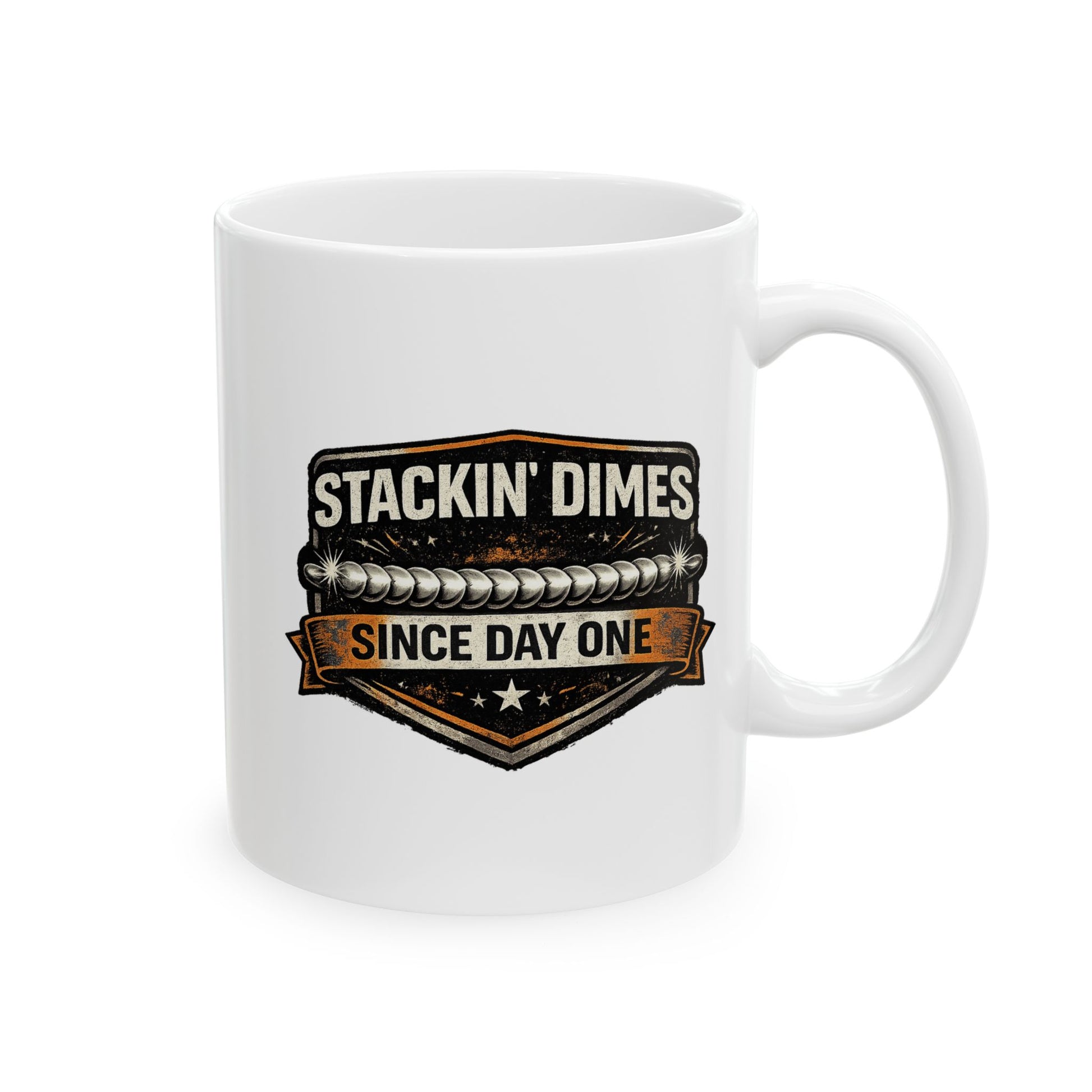This design features the phrase “Stackin’ Dimes Since Day One”, a respected expression in the welding world that represents clean, consistent welds and craftsmanship earned through experience. The stacked-dime visual reinforces pride in technique, patience, and doing it right from the start.